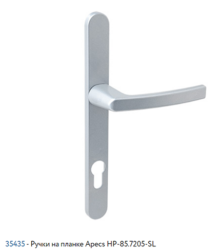 НОВИНКА! Ручки Apecs HP-85.7205 в цвете SL  В продажу поступили узкопрофильные ручки Apecs HP-85.7205 в новом цвете SL (серебро).  Технические характеристики  Материал планки и ручки – промышленный алюминиевый сплав ADC 12 * ADC12 – японский промышленный сплав, относится к группе литейных сплавов. Подобные сплавы обладают хорошими литейными свойствами, что позволяет получать детали со сложными поверхностями. Литейные алюминиевые сплавы имеют ряд особенностей: повышенную жидкотекучесть, обеспечивающую получение тонкостенных и сложных по конфигурации отливок, сравнительно невысокую линейную усадку, пониженную склонность к образованию горячих трещин.  Покрытие – полимерная краска. Стойкость в соляном тумане не менее 144 часов  Полимерное покрытие по RAL Цвет серебро SL – 9006  Толщина дверного полотна - от 67 мм до 76 мм   Подпружиненный механизм ручек   Работоспособность не менее 150 00 циклов открывания – закрывания   Гарантия - 3 года