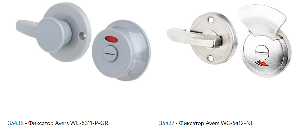 Конструкция фиксатора Avers WC-5412 представляет собой решение «два в одном»: фиксатор WC встроен в кнопку ручки. Такое исполнение упрощает монтаж — для установки требуется всего два монтажных отверстия вместо четырёх.
