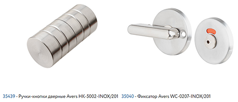 Фурнитура для сантехнических перегородок представляет собой конструктивно простые изделия с минимальными требованиями к обработке. Основными потребителями такой продукции являются производители сантехнических кабин. Вся фурнитура, независимо от используемого материала и марки стали, поставляется под брендом Avers.
